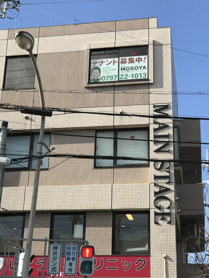 芦屋市浜町の稲荷山線沿い交差点北西角地に位置する、ビルの4階ワンフロアーのテナント募集中です。