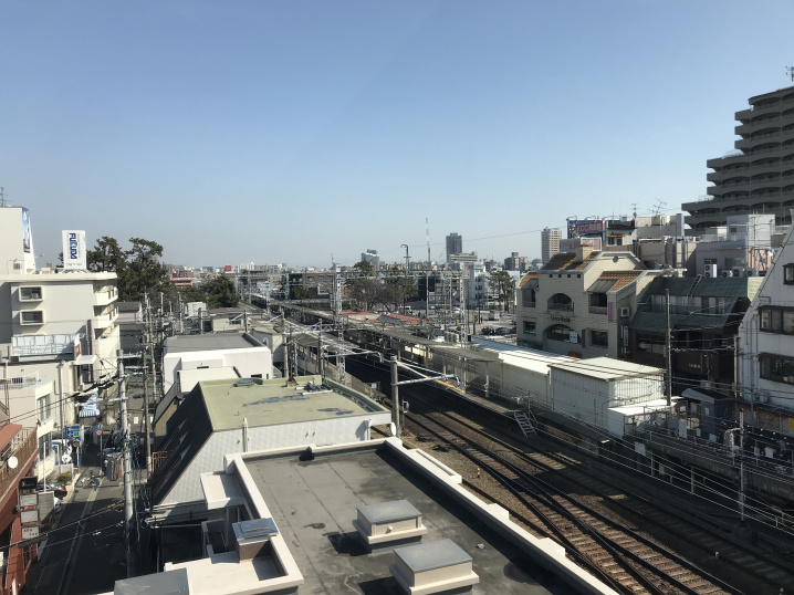 窓から見えるのは、見慣れぬ駅上空からの景色です。