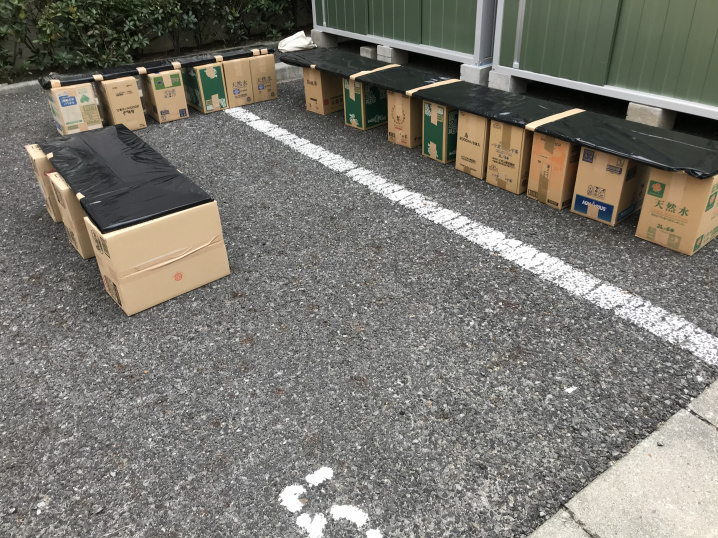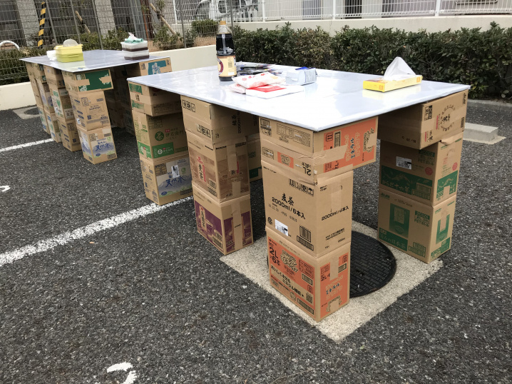段ボールで作られたテーブル。