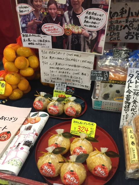 道後で、「みかんおにぎり」を食べました。