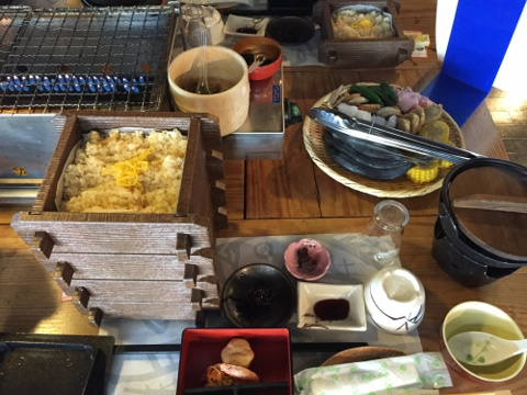 昼食は、瀬戸内名物料理「鯛めし・海鮮網焼き」